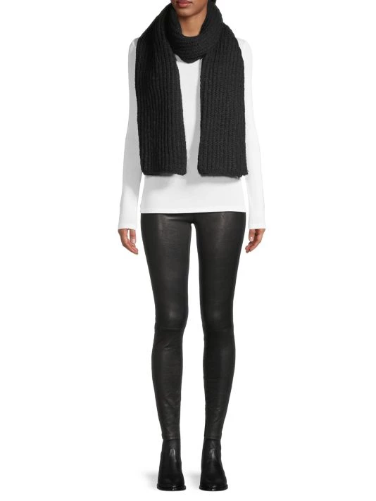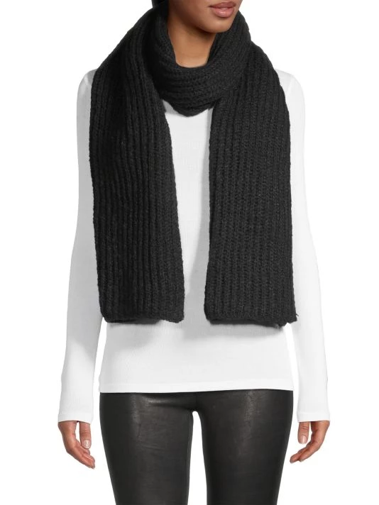 This two piece set includes a ribbed knit scarf and ribbed beanie finished with faux fur pom.