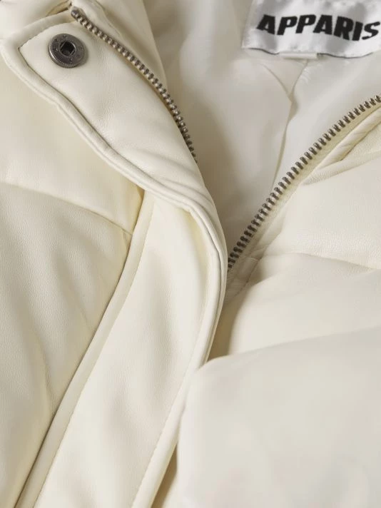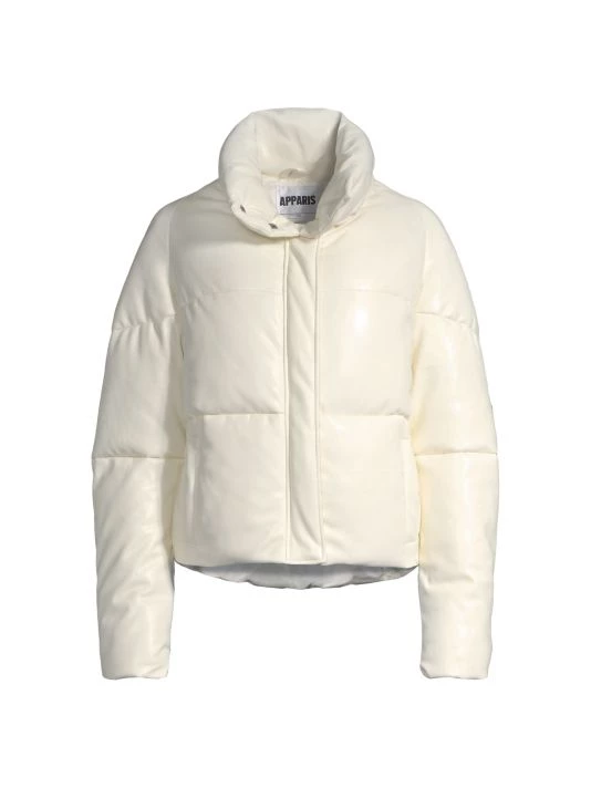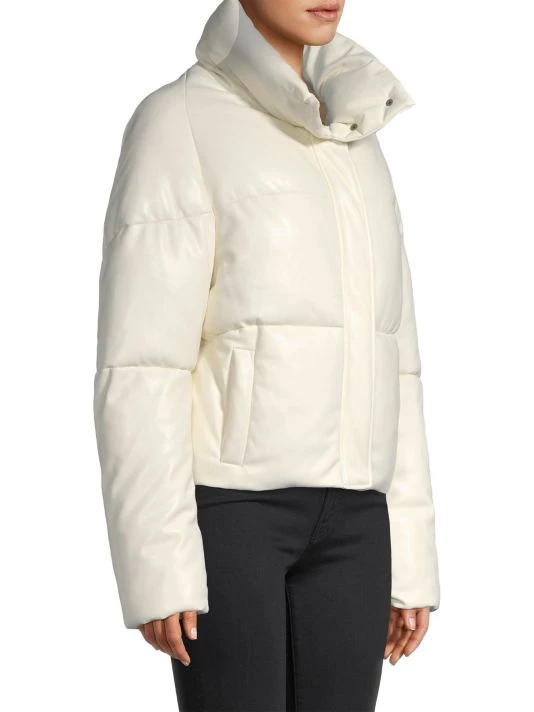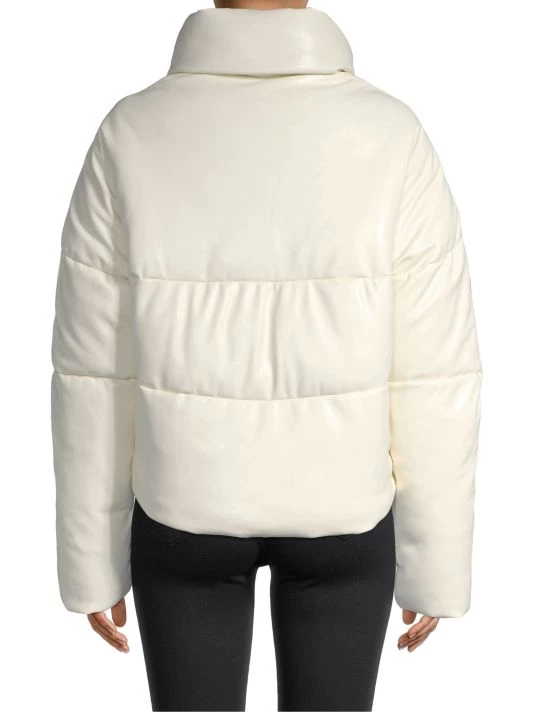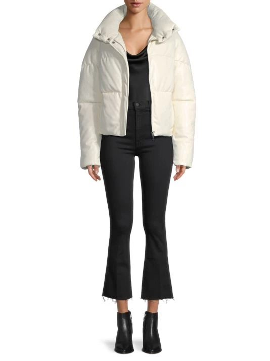 Leather-like fabrication elevates this classic cropped puffer jacket.