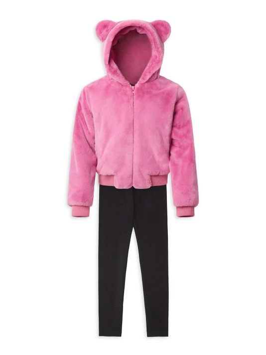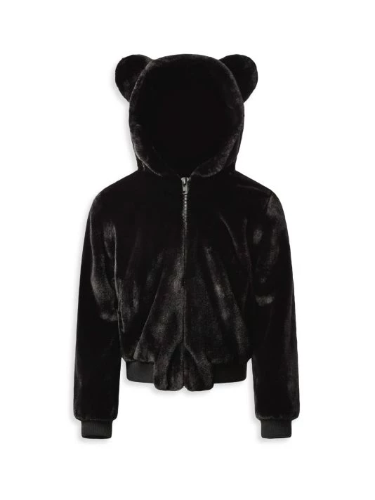 This bomber jacket in a faux fur finish is upgraded with ear details on the hood.