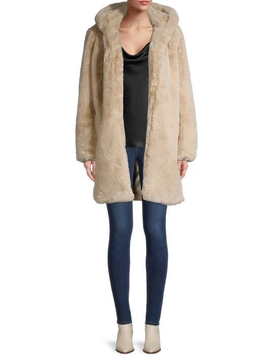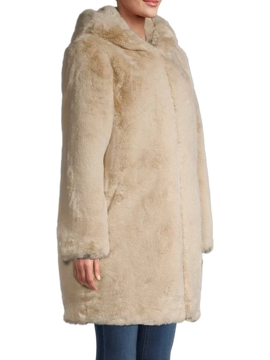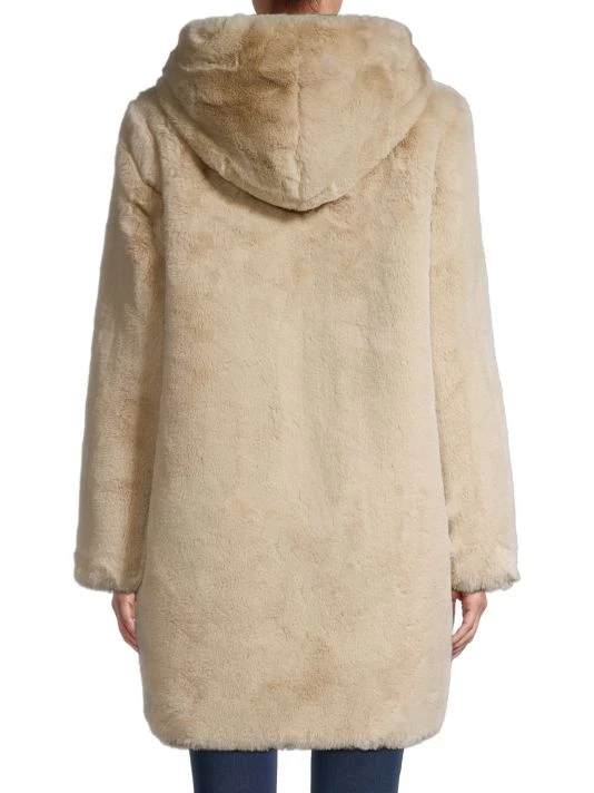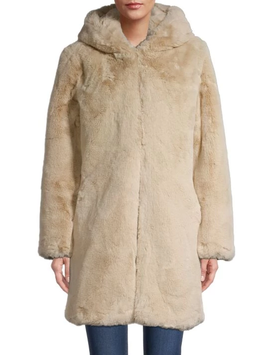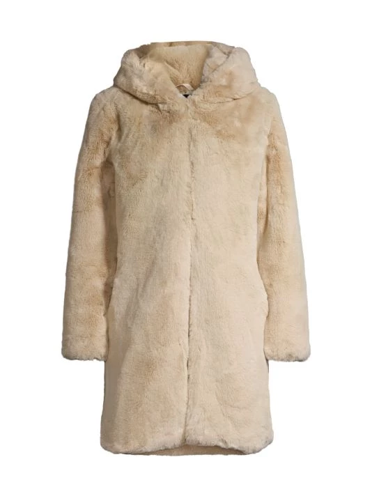 Ultra-soft faux fur and a cozy, generous silhouette define this hooded coat.