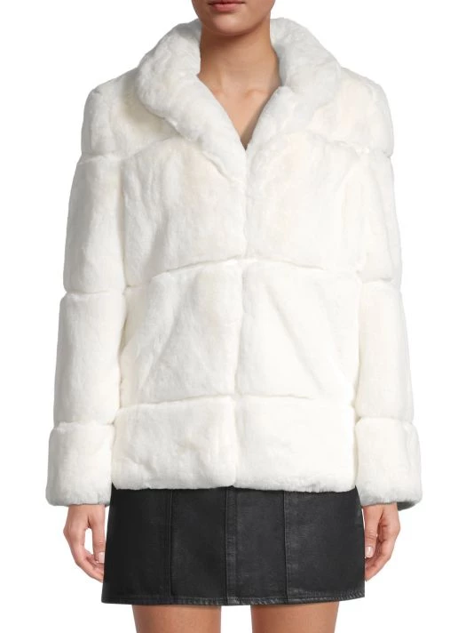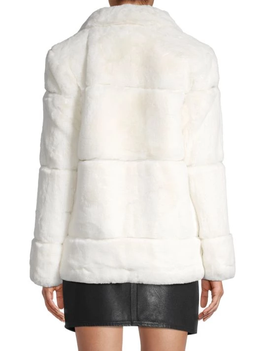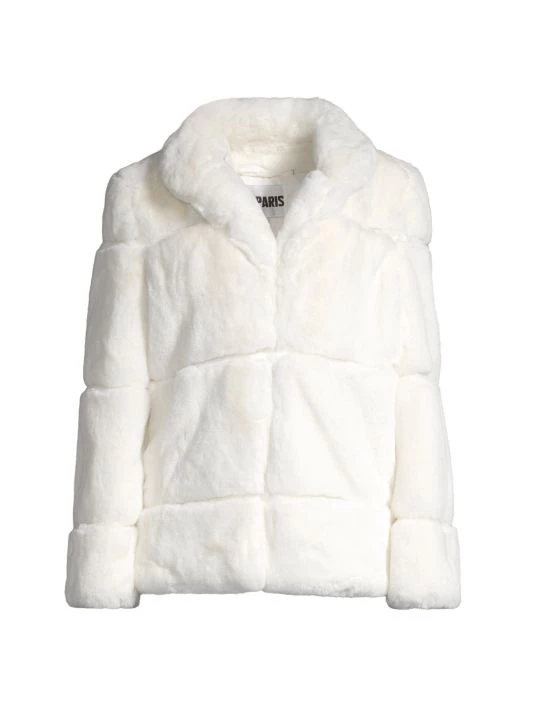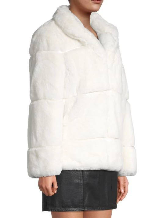 A tailored look defines this paneled faux fur jacket.