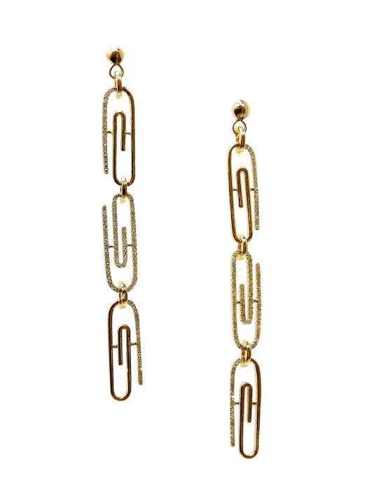 Glowing yellow gold and diamond pavé paperclip links form these modern linear earrings.