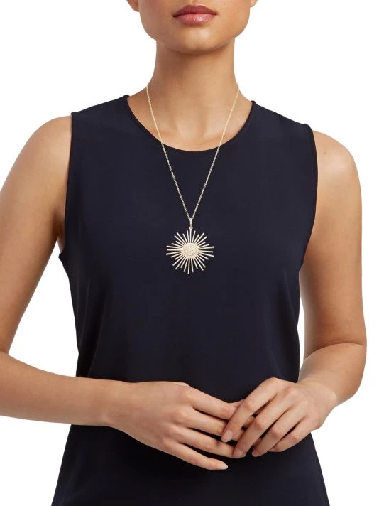 Glittering diamonds replicate the glow of the sun, illuminating this pendant on a delicate yellow gold chain necklace.