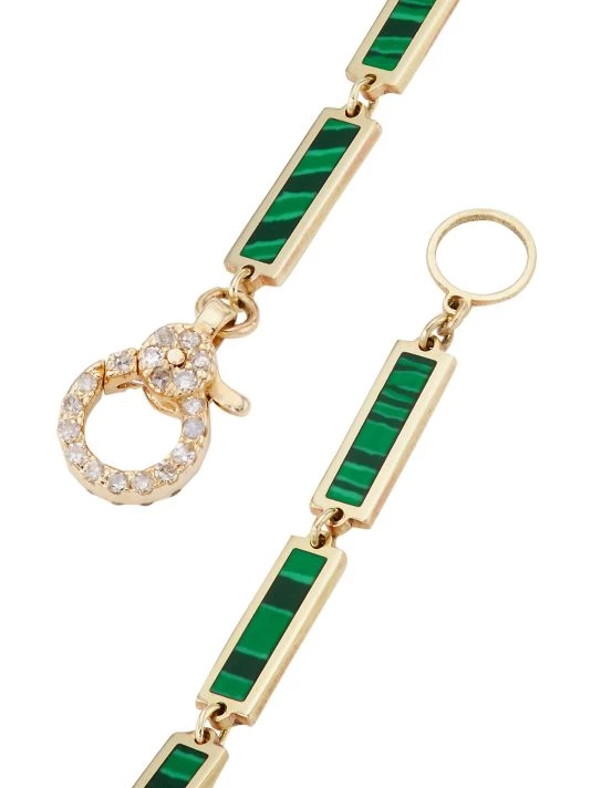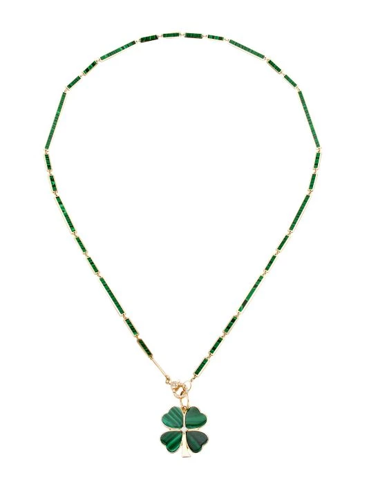 Featuring a four-leaf-clover pendant, Nina Gilin’s 14K-yellow-gold necklace is embellished with vibrant malachite and shimmering pavé diamonds. The New York-based jewelry designer draws inspiration from her European upbringing in St. Petersburg, Russia to craft her playful, easy-to-wear pieces.