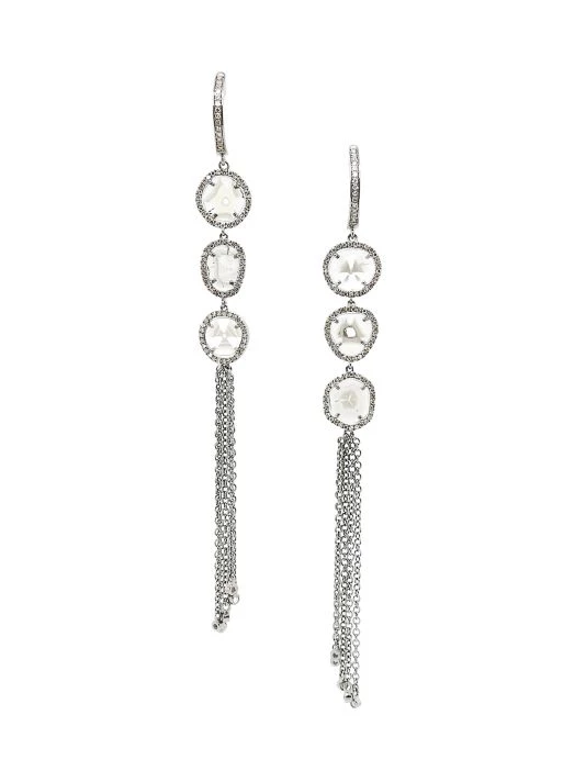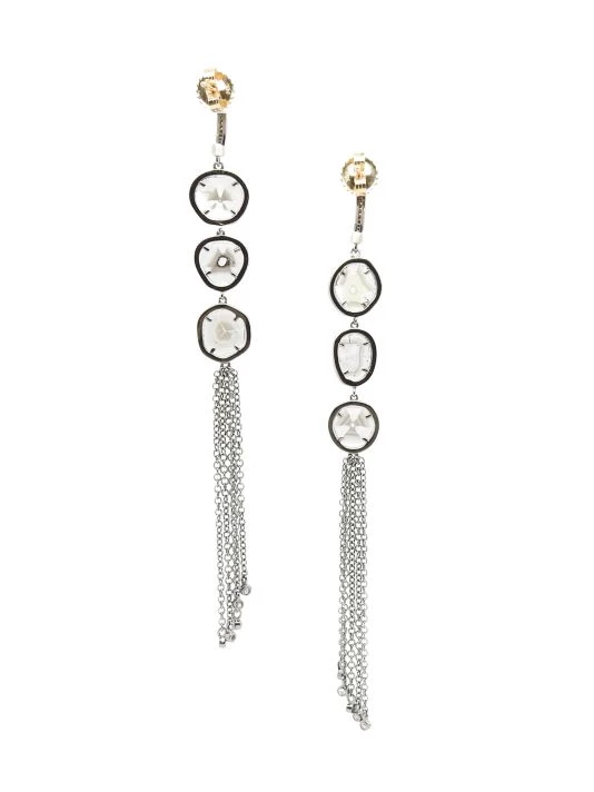 Dramatic drop earrings shimmer with rose-cut diamonds and long trailing chains.