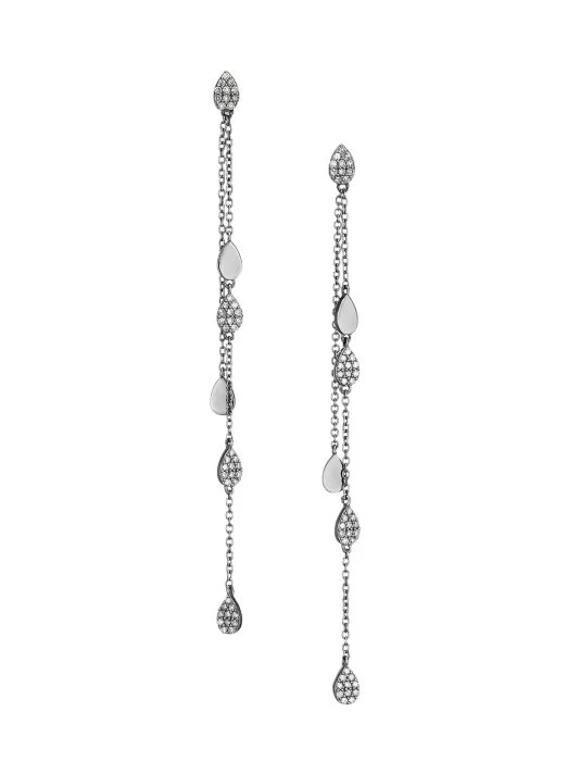 Captivating chain earrings punctuated with polished and diamond-pavé discs.