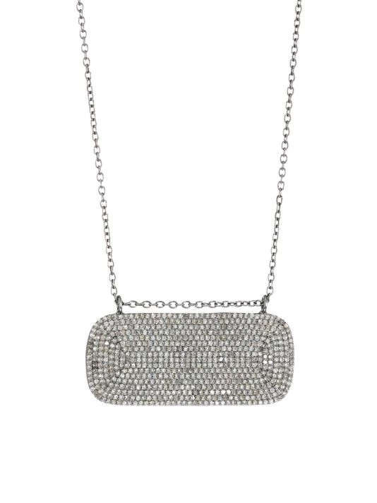 Radiant diamond pavé pendant suspends on a delicate silvertone chain.
