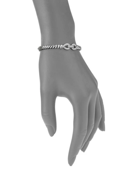 - Polished twist-effect bangle with linked pavé detail