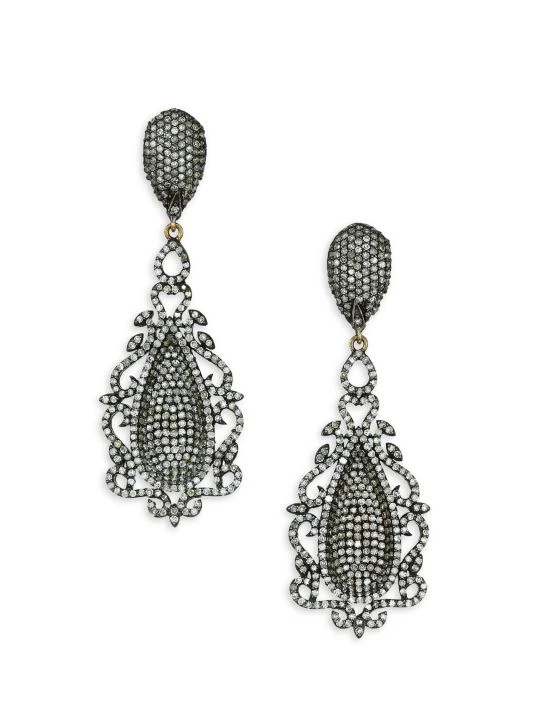Silvertone chandelier earrings embellished with shimmering champagne diamonds exudes a glamorous elegance.
