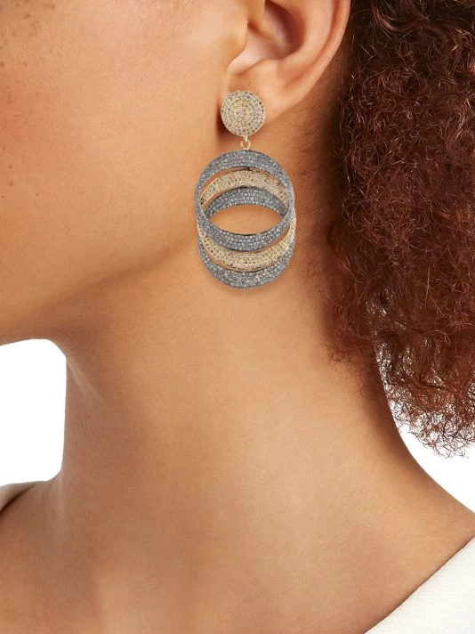 Featuring a two-tone design, these multi-drop hoop earrings sparkle in a diamond pavé finish.